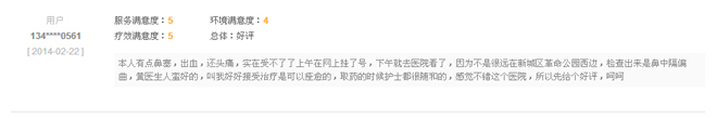 李先生只是西安新城中大耳鼻喉医院多例患者中的一个缩影,作为西安城镇医保、新农合定点单位始终秉承“以人为本,全心服务”的宗旨,在  率先开展以“亲情服务温馨化、全程导诊便捷化、预约就诊网络化、质量管理规范化、就诊环境舒适化”的人性化服务,施行“一医一患一诊室”,提升服务品质,全方位满足患者就医需求。严格收费,对于已出院的患者应进行电话回访,了解患者情况,以“星级的服务,普通的收费”筑起心连心的爱心桥梁。鼻炎治疗绿色通道 点击进入网上预约挂号系统